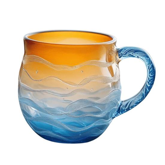 Конструкция из боросиликатного стекла: Этот стакан из высококачественного боросиликатного стекла, вдохновленный пляжной тематикой, не только служит функциональной емкостью для воды, но и является потрясающим произведением искусства в вашей повседневной жизни.