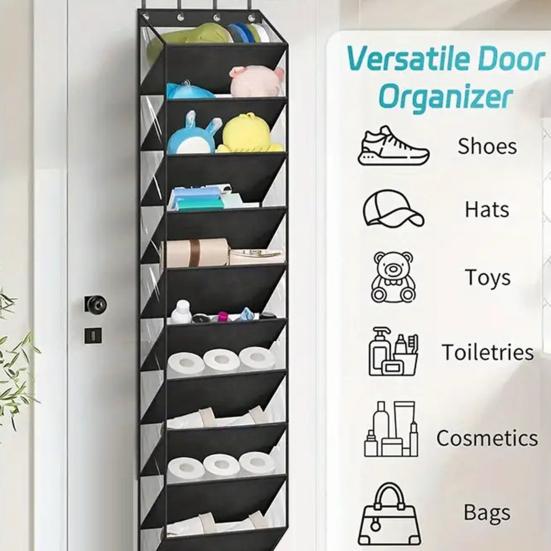 Экономия места: Эффективно используйте неиспользуемое вертикальное пространство двери, обеспечивая при этом достаточную вместимость для хранения.. Улучшите организацию и усилия по избавлению от беспорядка с помощью этого многофункционального решения для хранения.. Идеально для оптимизации жизни