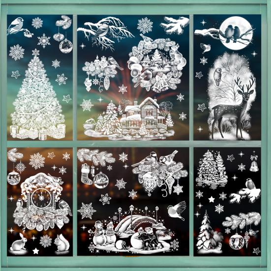 Добавьте нотку причудливости в ваш дом с этими ДЕКОРАТИВНЫМИ НАКЛЕЙКАМИ НА ОКНА, отличающимися сложными узорами и яркими деталями, которые передают дух сезона.. Поднимите свои рождественские украшения на новый уровень с легкостью.