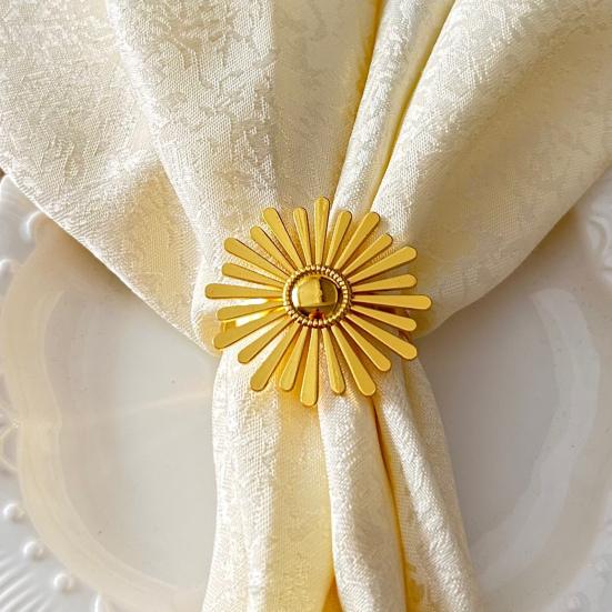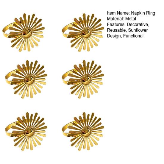Элегантный дизайн подсолнуха: Изысканно выполненные с детальными мотивами подсолнухов, эти металлические кольца для салфеток добавляют нотку деревенского очарования и изысканности любому обеденному столу, идеально подходя для свадеб, дней рождений или повседневной элегантности.