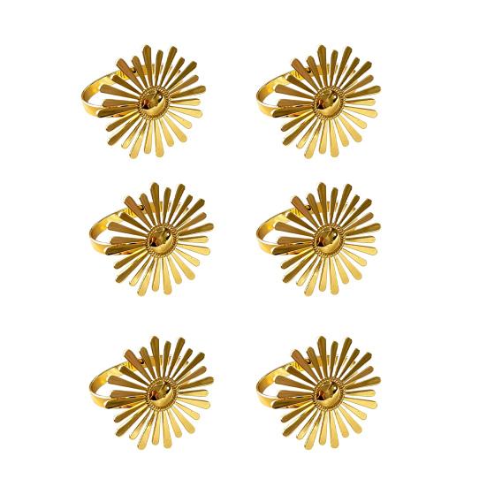 Украсьте ваш обед этими уникальными салфеточными кольцами в форме подсолнуха.. Изготовленные из высококачественного металла, эти изысканные кольца для салфеток добавят нотку элегантности любой сервировке стола..