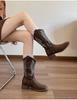 Винтажная вышивка V-образный вырез универсальные ботинки Мартин на толстой подошве и толстом каблуке 2025 осень и зима Spice Girl облегающие ботинки западного ковбоя на толстой подошве