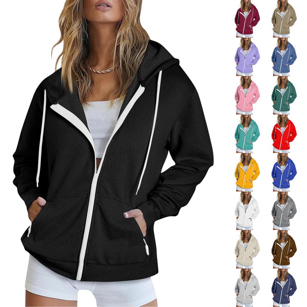 Худи женское оверсайз, толстовка повседневная с длинным рукавом, флисовая куртка, легкие осенние худи, карманы на молнии