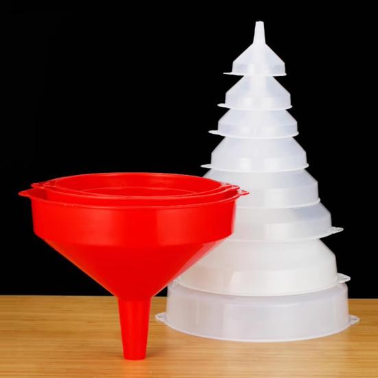 Несколько размеров: Этот набор включает 8 воронок размером от 1 до 8, удовлетворяющих разнообразным потребностям, таким как приготовление пищи на кухне и переливание жидкостей.. Универсальный и адаптируемый для различных применений.