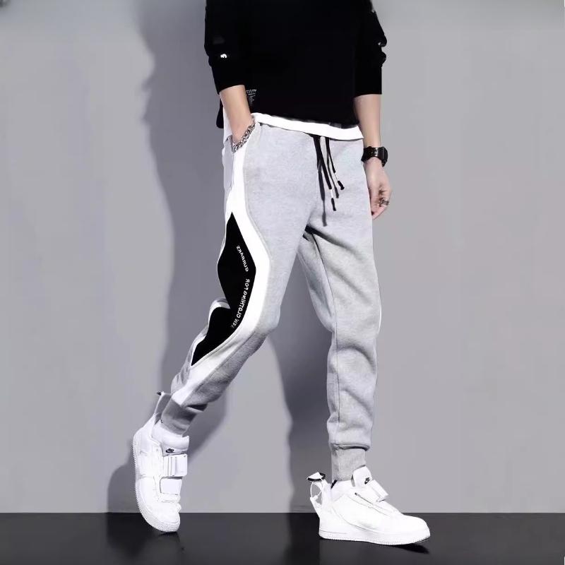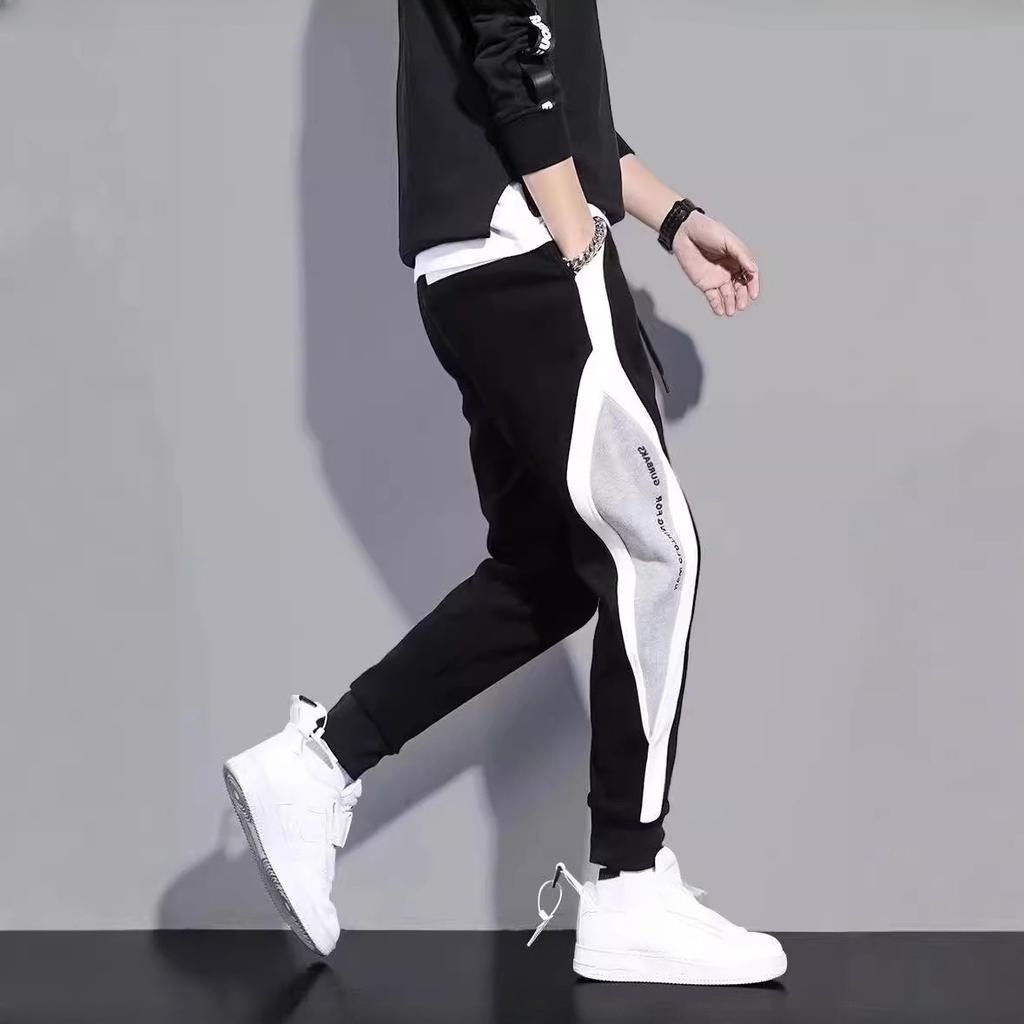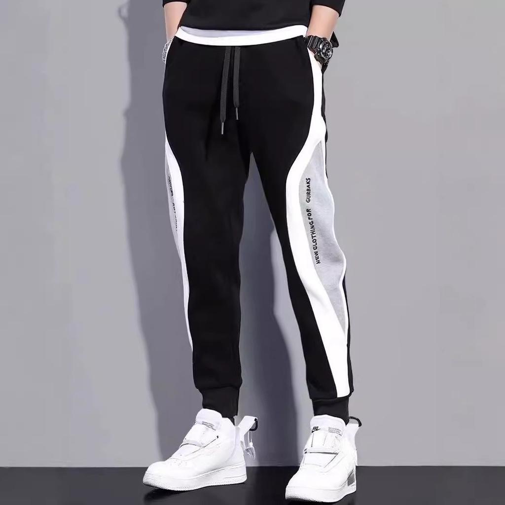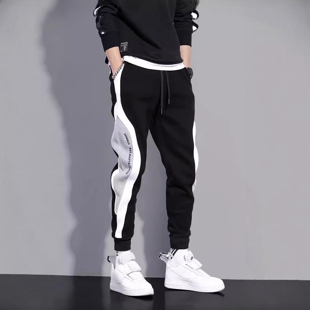Мужские осенне-зимние теплые повседневные черные длинные брюки на флисовой подкладке в стиле колор-блок, спортивные штаны, свободные брюки с манжетами