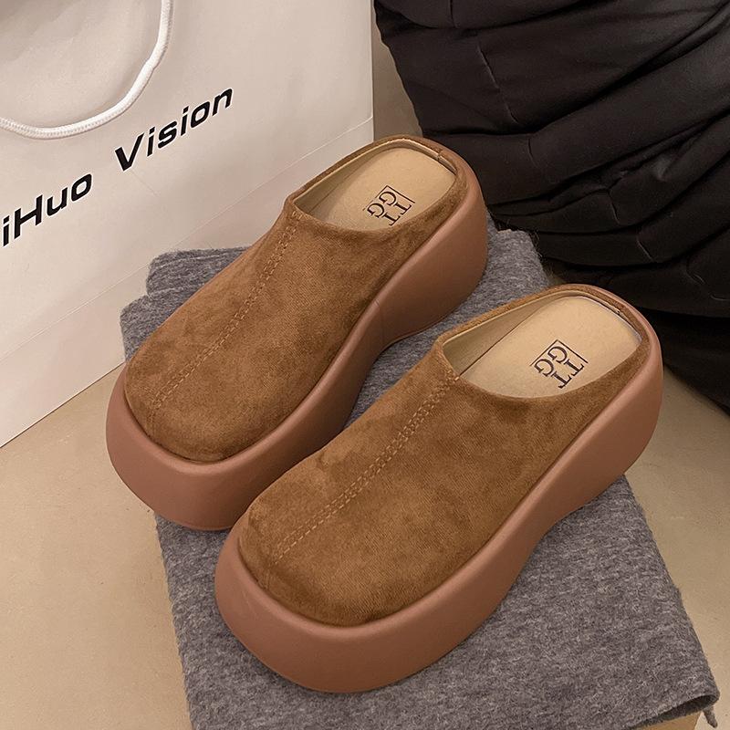 Ретро шлепанцы с толстой подошвой и закрытым носком для женщин, новая весенняя ленивая повседневная обувь на платформе