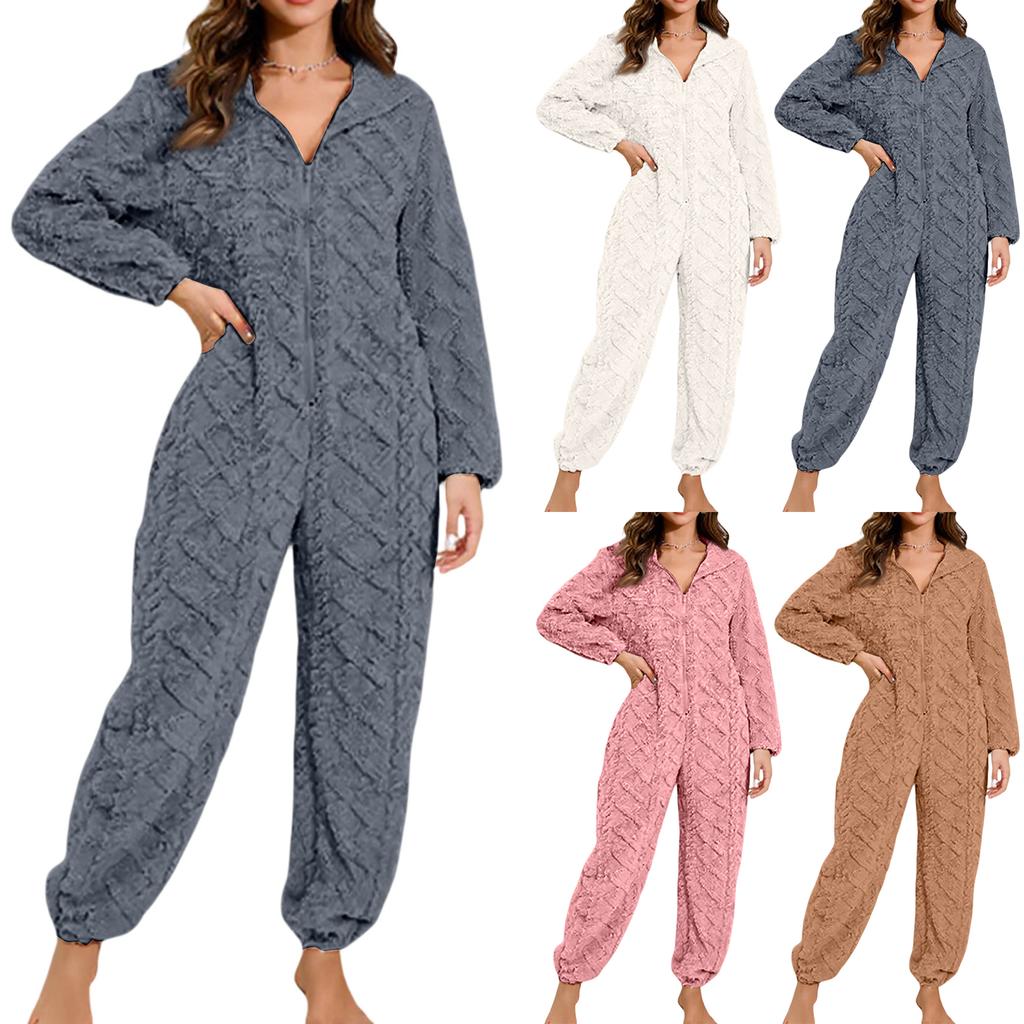Женская мода Однотонная плюшевая домашняя одежда Повседневный комбинезон с капюшоном на молнии и длинными рукавами Пижама — купить товар онлайн с бесплатной доставкой по всему миру!