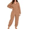 Женская мода Однотонная плюшевая домашняя одежда Повседневный комбинезон с капюшоном на молнии и длинными рукавами Пижама