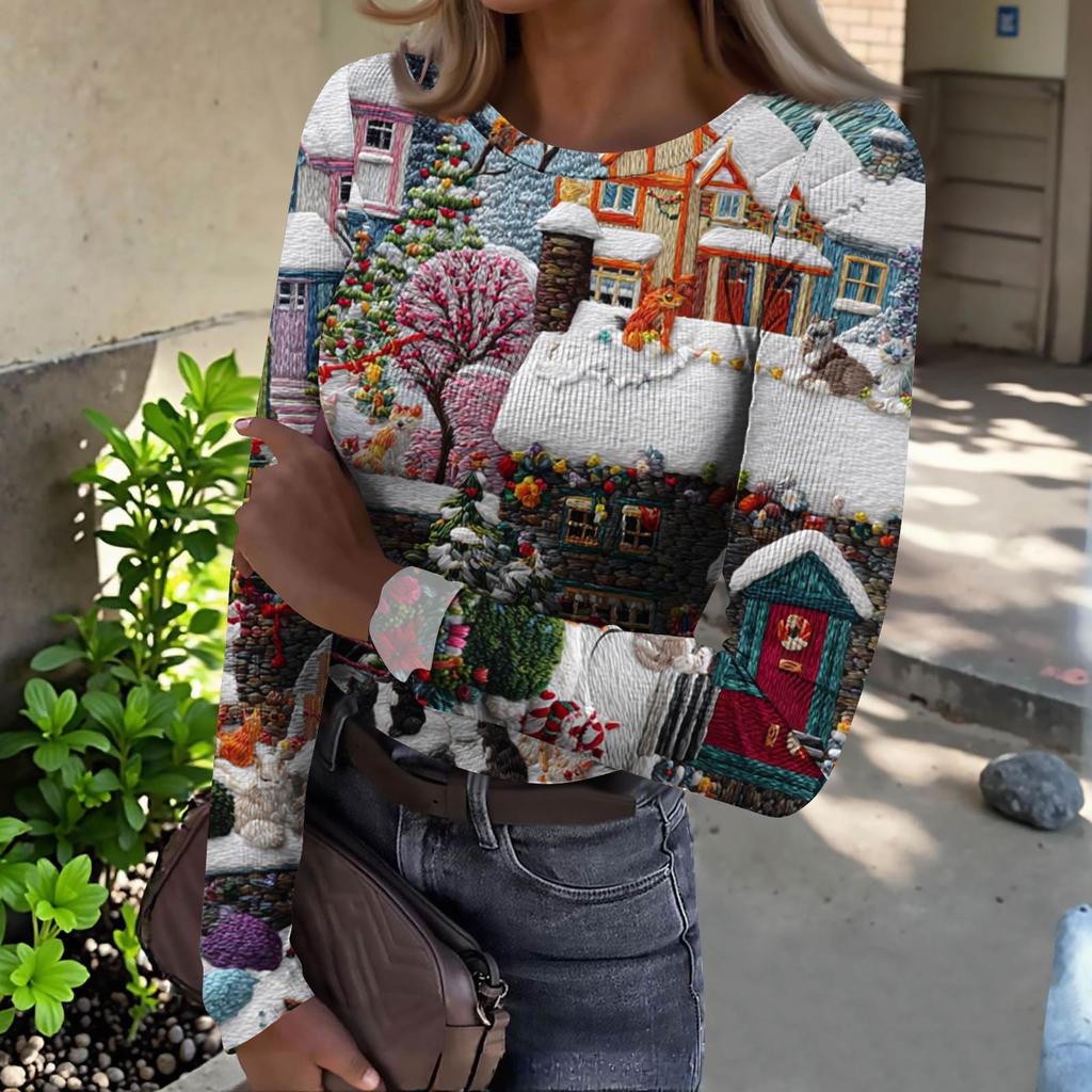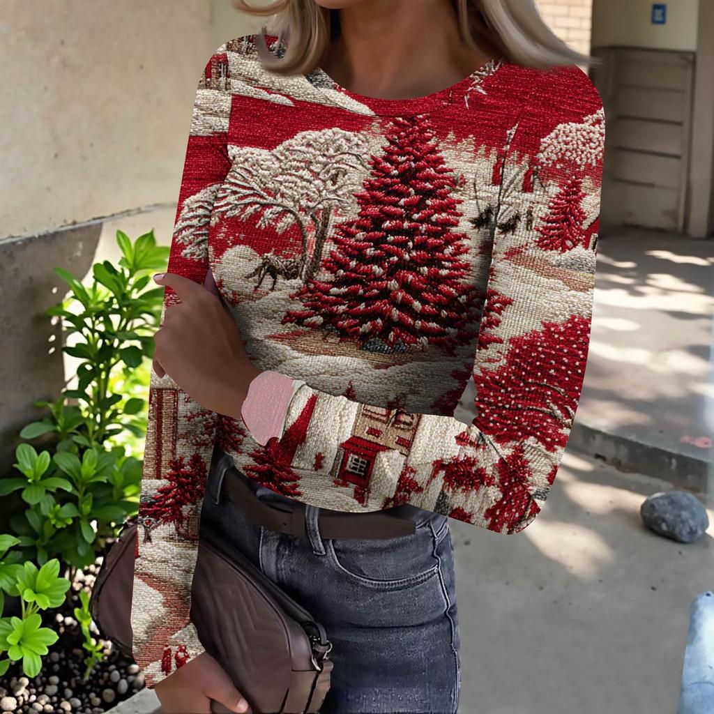 Женская футболка с облегающим низом, модная повседневная с градиентным принтом, пуловер с круглым вырезом и длинными рукавами