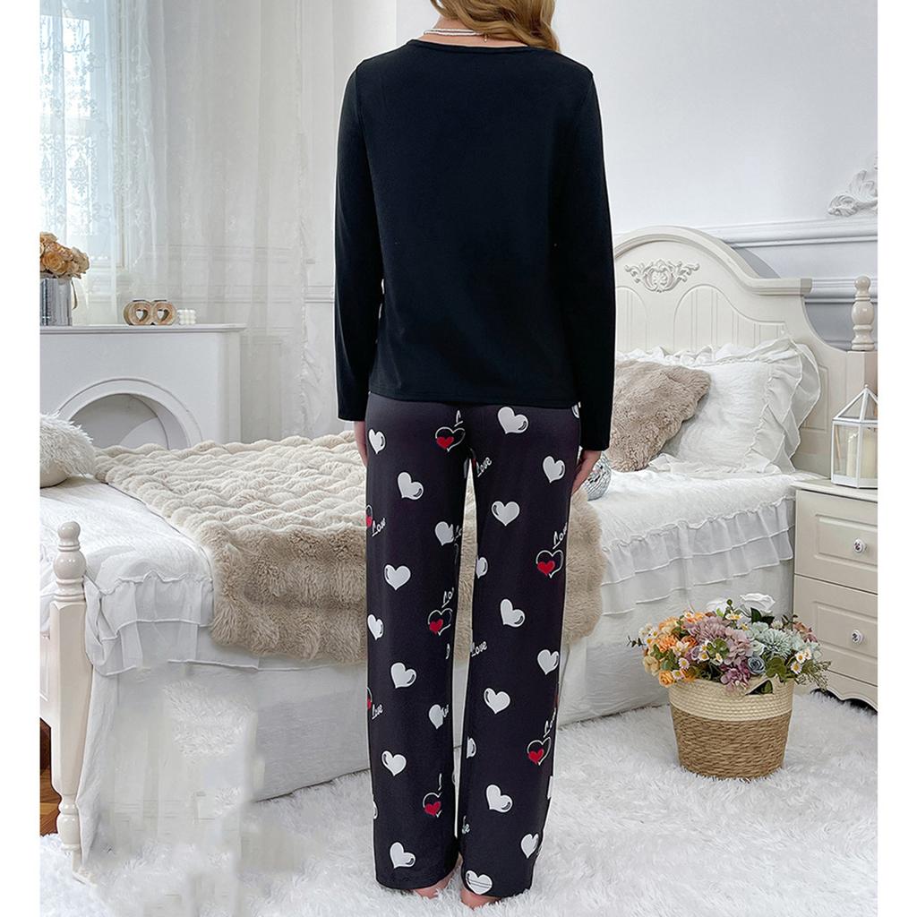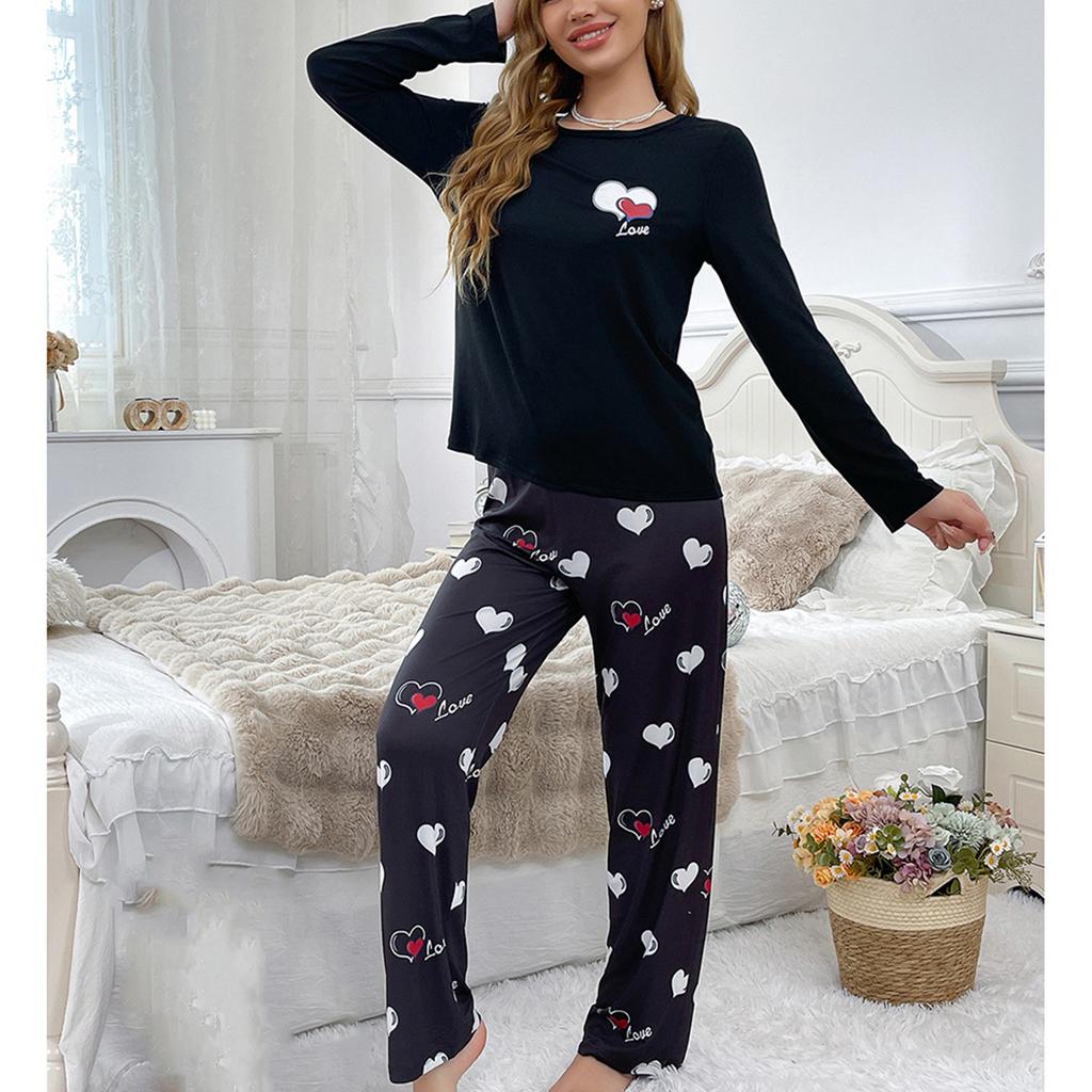 Женская пижама, комплект из пуловера с круглым вырезом и длинными рукавами, свободная и удобная эластичная домашняя одежда, комплект из двух предметов, можно носить на улице