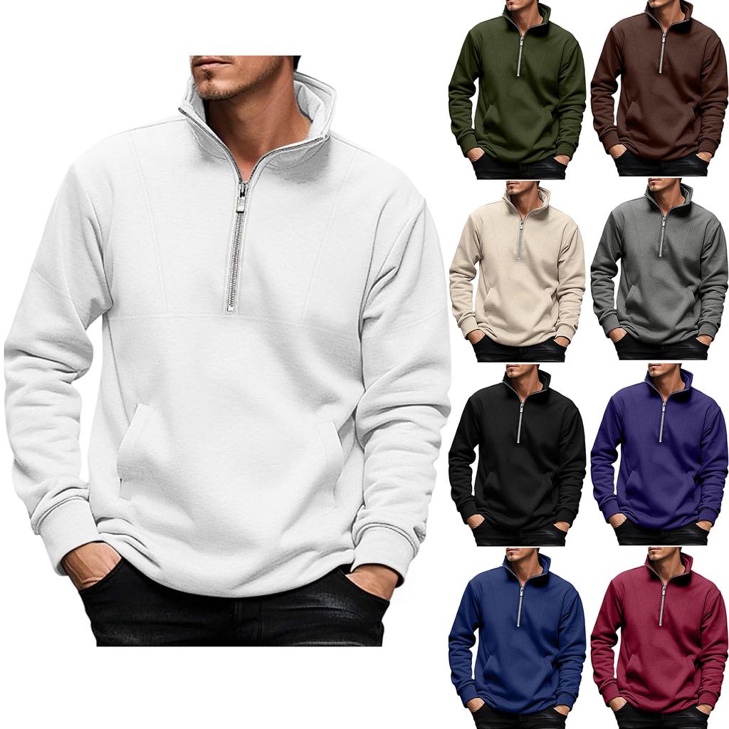 Мужские флисовые свитшоты-пуловеры с подкладкой на осень-зиму, теплые, с длинным рукавом, с воротником-стойкой, топы-свитшоты с карманом — купить товар онлайн с бесплатной доставкой по всему миру!