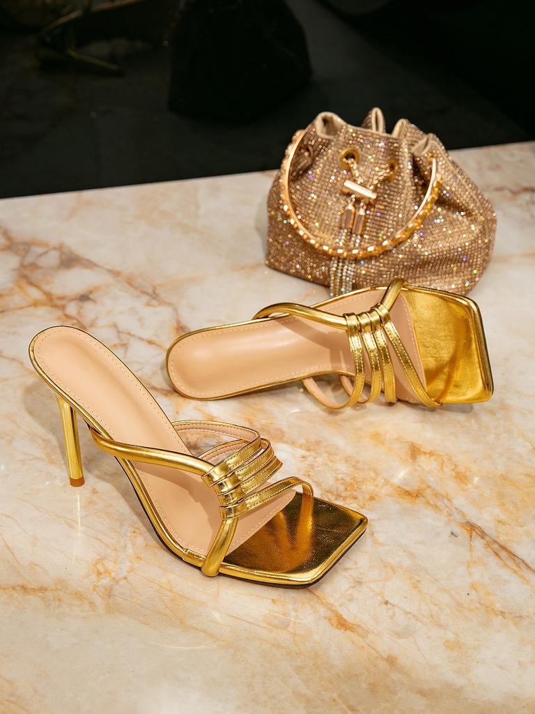 Женские босоножки на высоком каблуке, женские туфли на высоком каблуке золотого цвета, модная вечеринка на шпильке, вечеринка, босоножки с квадратным носком