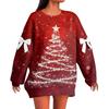 Женский рождественский пуловер с принтом и бантом, с круглым вырезом, длинными рукавами, свободного кроя