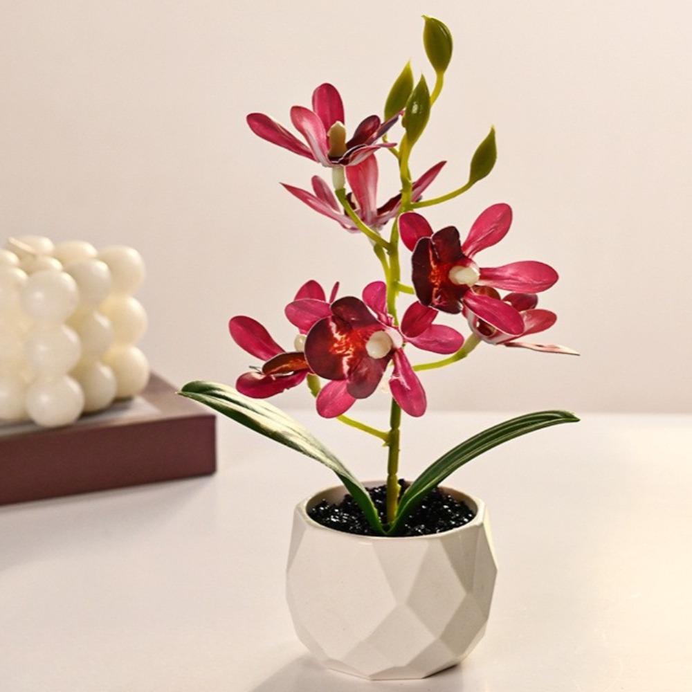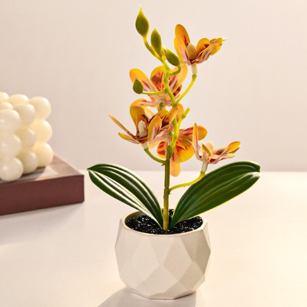Бонсай Имитация Орхидеи-бабочки Искусственное Растение в Горшке Стол Обеденный Стол Домашний Офис Ваза Свадьба Украшение для Дома Комнаты Подарок
