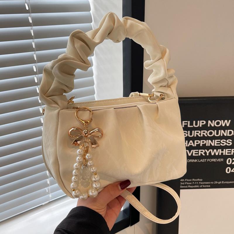 - **Детали структурированной сумки-трансформера**: Имеет стильный структурированный силуэт с ручкой сверху из ПУ материала, деталировкой ручки с драпировкой, жемчужным шармом и универсальными вариантами ношения (ручной, на одно плечо, через плечо), излучая сладкое и шикарное очарование. Разнообразие цветовых вариантов удовлетворяет разнообразным стилистическим предпочтениям.