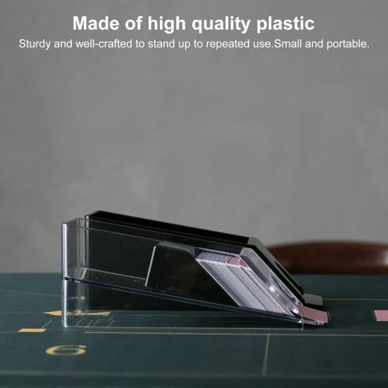 Устойчивое строительство: Изготовлен из высококачественного пластика, что обеспечивает долговечность и устойчивость к частому использованию, что делает его надежным инструментом для раздачи карт в бесчисленных игровых процессах.