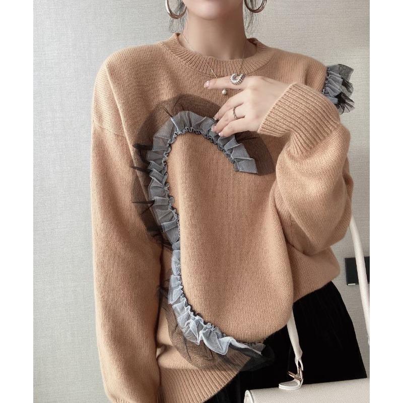 Осень и зима новый нежный повседневный стиль модный вязаный свитер нишевый дизайн темпераментный пуловер свитер женский