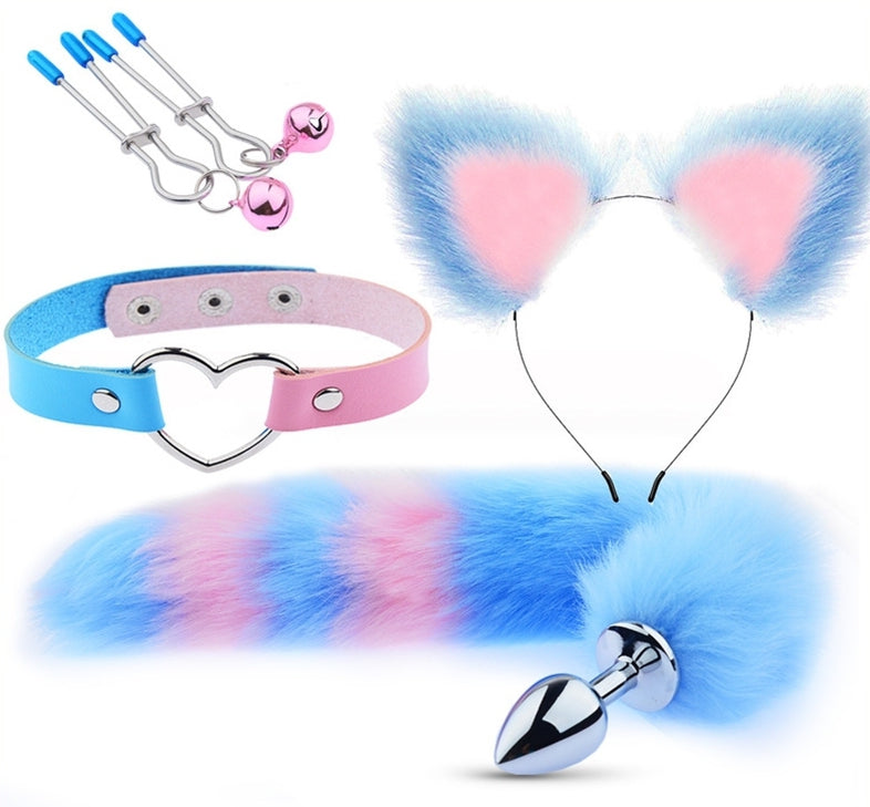 Kit Sm Mix Bondage Bleu-Rose 4 pièces - Generique - Puppy Play, Dildos Queue