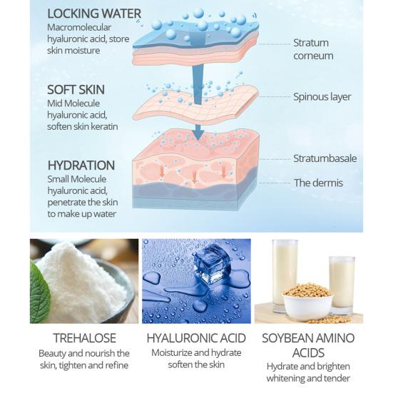 Подходит для всех типов кожи, чтобы использовать для увлажнения лица и осветления кожи.