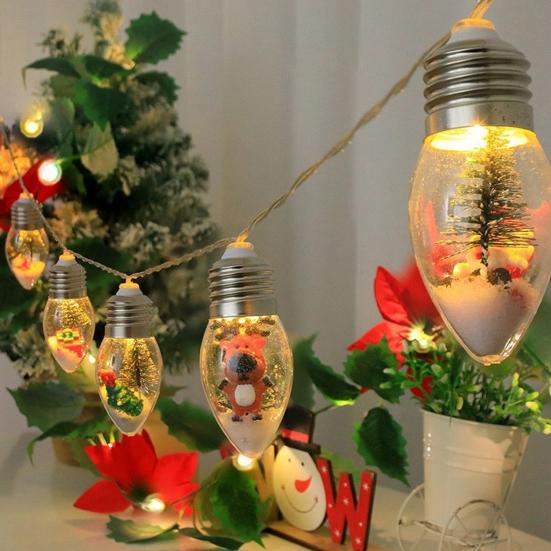 Очаровательный дизайн на рождественскую тематику: Этот 1 набор светодиодных декоративных огней в виде бутылок желаний с Сантой, Снеговиком и Оленем — идеальное рождественское украшение. Каждая лампочка наполнена нежной искусственной сосной, снегом и милыми украшениями. Вы можете использовать их для украшения спален, каминов, окон и штор, создавая теплую и праздничную атмосферу..