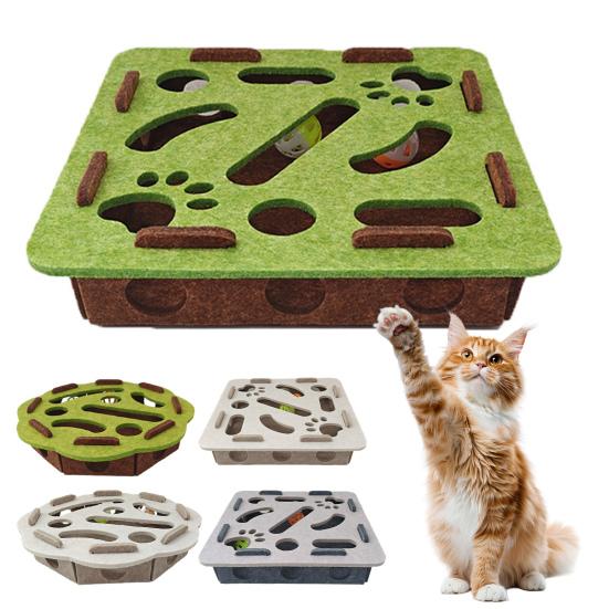 Пазл для умных кошек: Изготовленная из войлочного лабиринта и скрытых путей, эта развивающая коробка бросает вызов интеллекту вашей кошки, поощряя исследование и взаимодействие с шариками с колокольчиками, обеспечивая бесконечное развлечение и умственную стимуляцию.