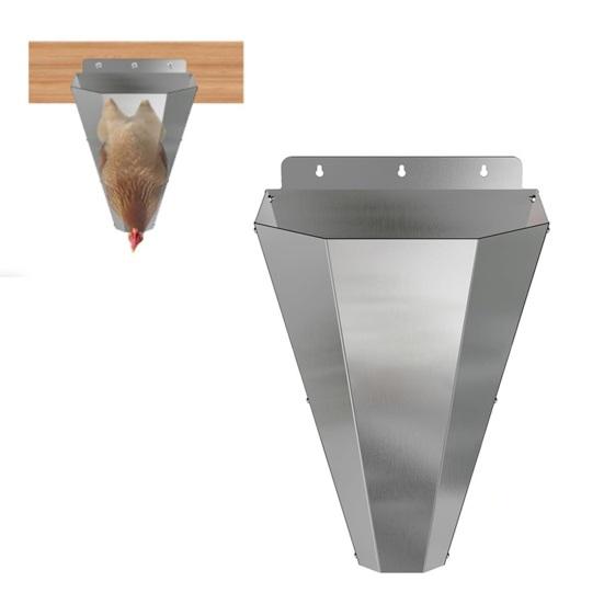Конус с плоским дном имеет 3 отверстия для винтов для легкой установки на стены или доски, обеспечивая гибкость с помощью кабельных стяжек или крючков.. Изготовленные из высококачественной нержавеющей стали, эти конусы прочные и долговечные, способны выдерживать птицу различного веса..