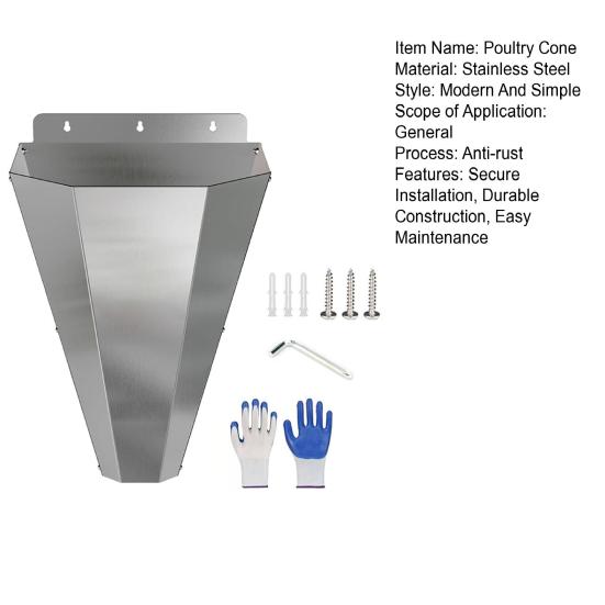 Эффективная обработка: Конус для птицы из нержавеющей стали обеспечивает более чистую и безопасную переработку.. Оснащенный защитными перчатками, он оптимизирует обработку птицы для оптимальной эффективности.