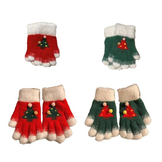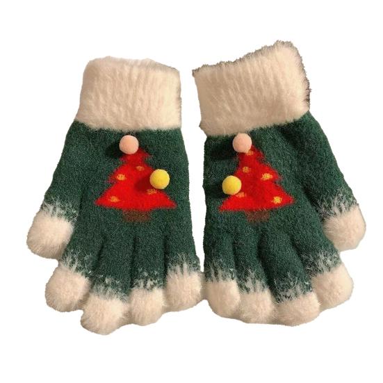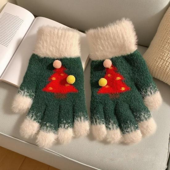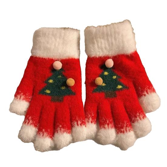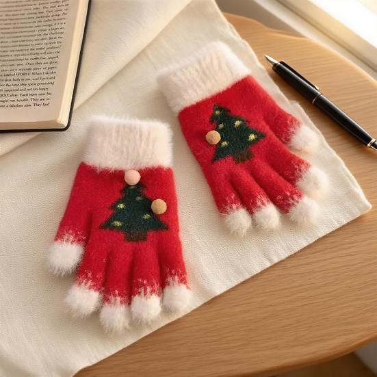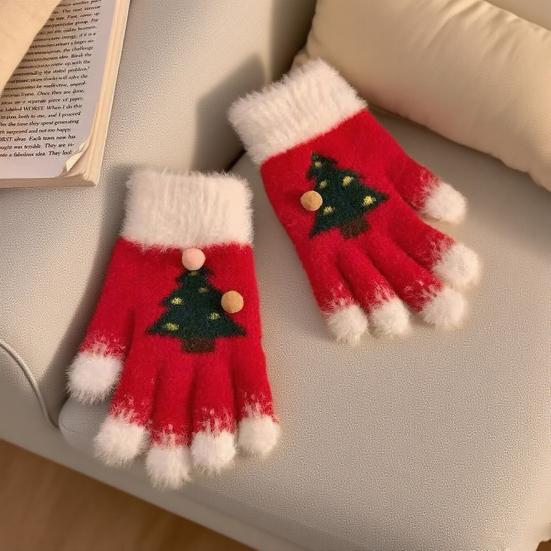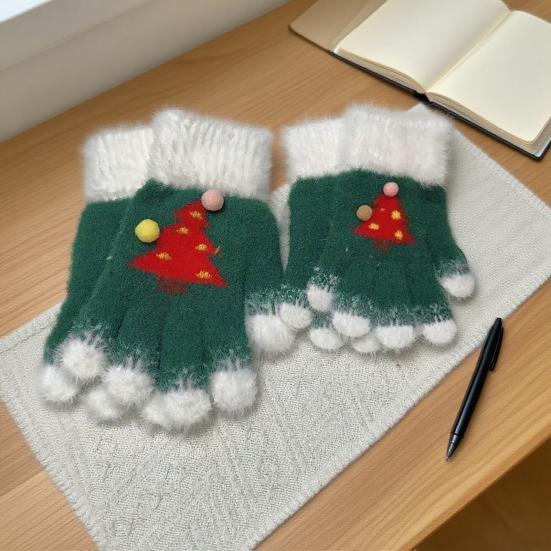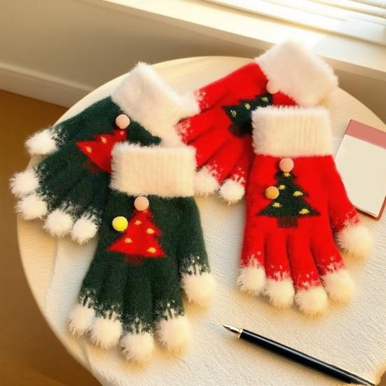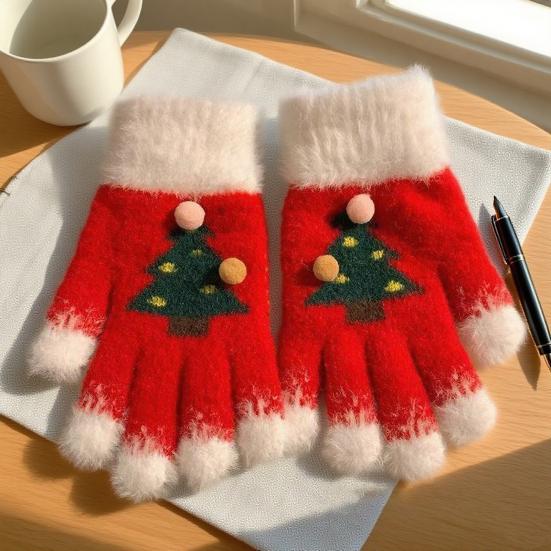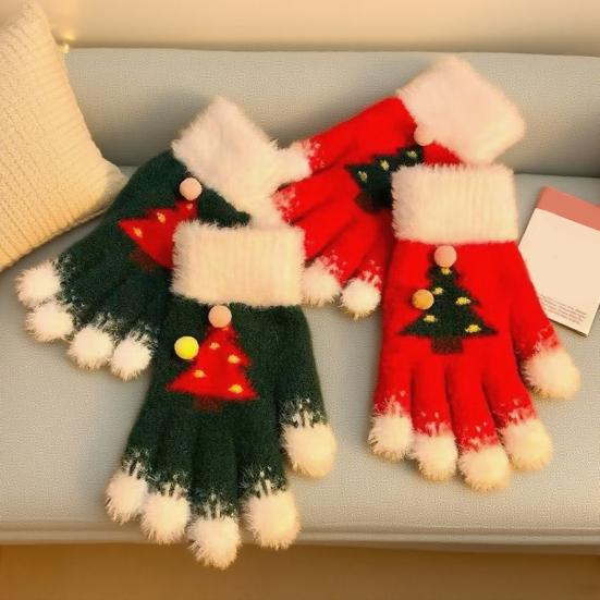 Вязаные рождественские перчатки унисекс с узором «Рождественская елка», зимние пушистые перчатки с сенсорным экраном