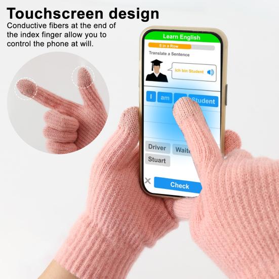 Теплый материал: Сохраняйте тепло и стиль с этими акриловыми перчатками, созданными для комфорта и долговечности. Функция сенсорного экрана позволяет оставаться на связи, сохраняя руки в тепле в зимний холод.