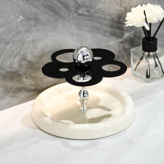 Стабильная база: Расширенное основание обеспечивает устойчивость, предотвращая шатание на раковине, и гарантирует беспроблемное использование подставки для зубных щеток.