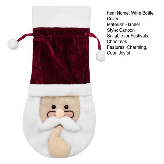 Многоцелевая магия: Помимо упаковки вина, этот мешок для бутылки в виде Санта-Клауса служит универсальным держателем для конфет, вина или других подарков, радуя гостей и близких своим праздничным очарованием и практичностью.
