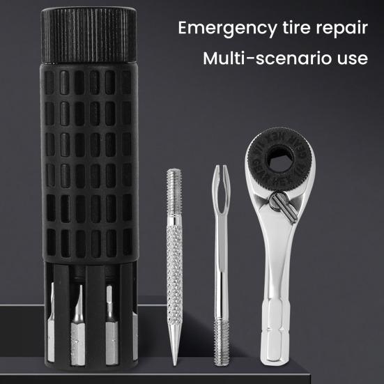 Compact Cylindrical Design: The cylindrical tire repair tools are compactly stored, promoting a neat and organized setup for quick access and ensuring a clutter-free workspace at all times.