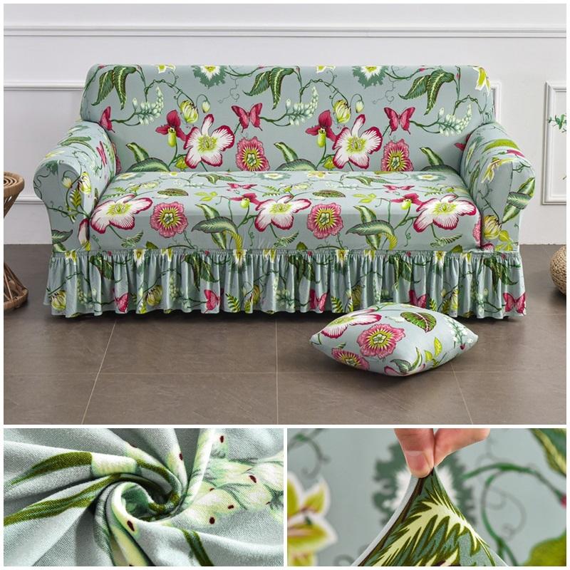 Чехол для дивана с скандинавскими цветами, эластичные чехлы для дивана с юбкой, моющаяся защита для мебели из спандекса для декора гостиной