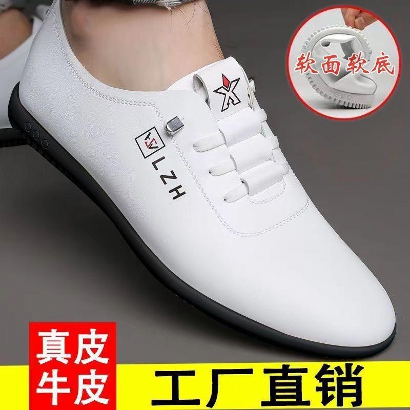 Мужские кожаные туфли из натуральной коровьей кожи, летние новые дышащие дезодорирующие, без ремешков, белые повседневные туфли, мягкая подошва, мягкая поверхность, кожаные туфли