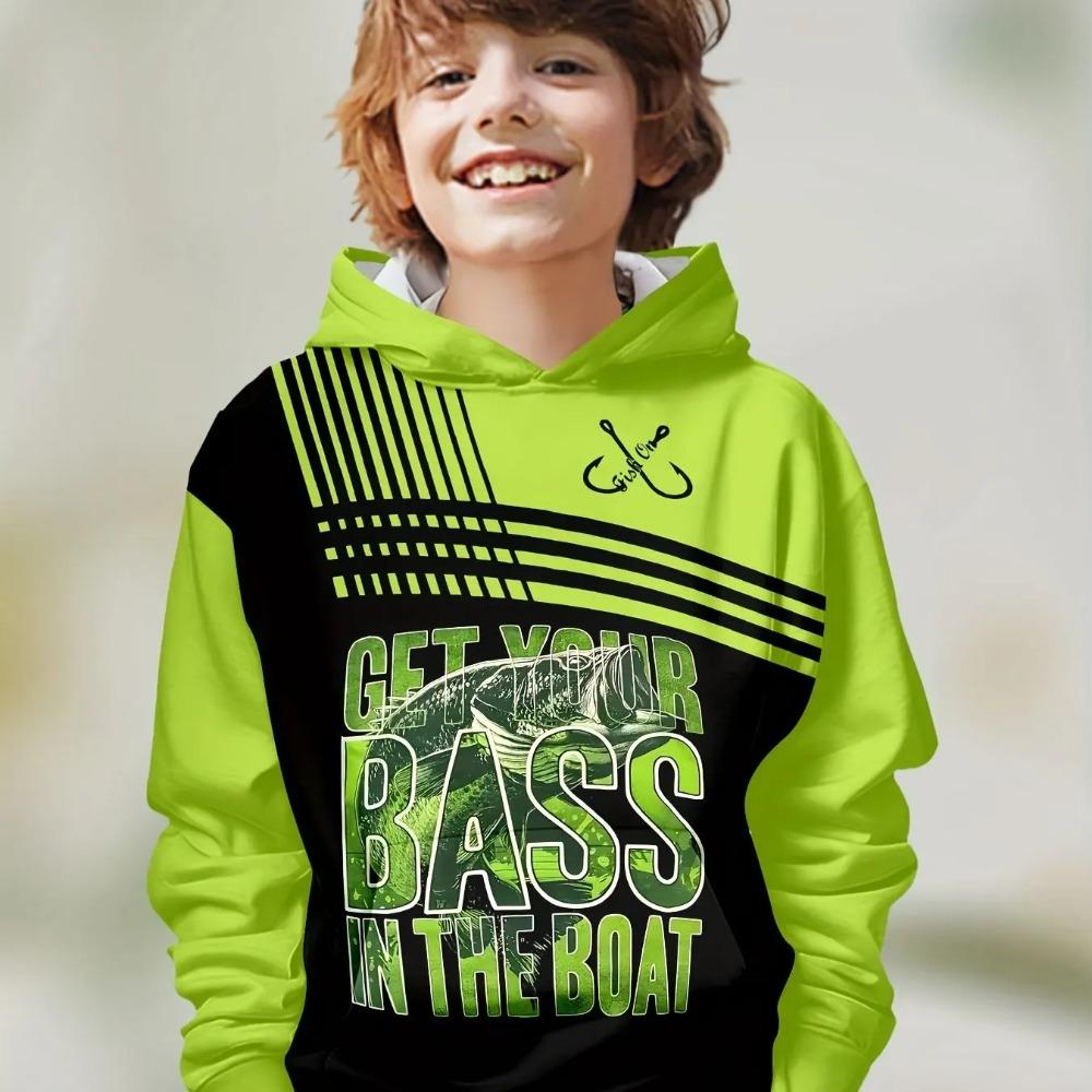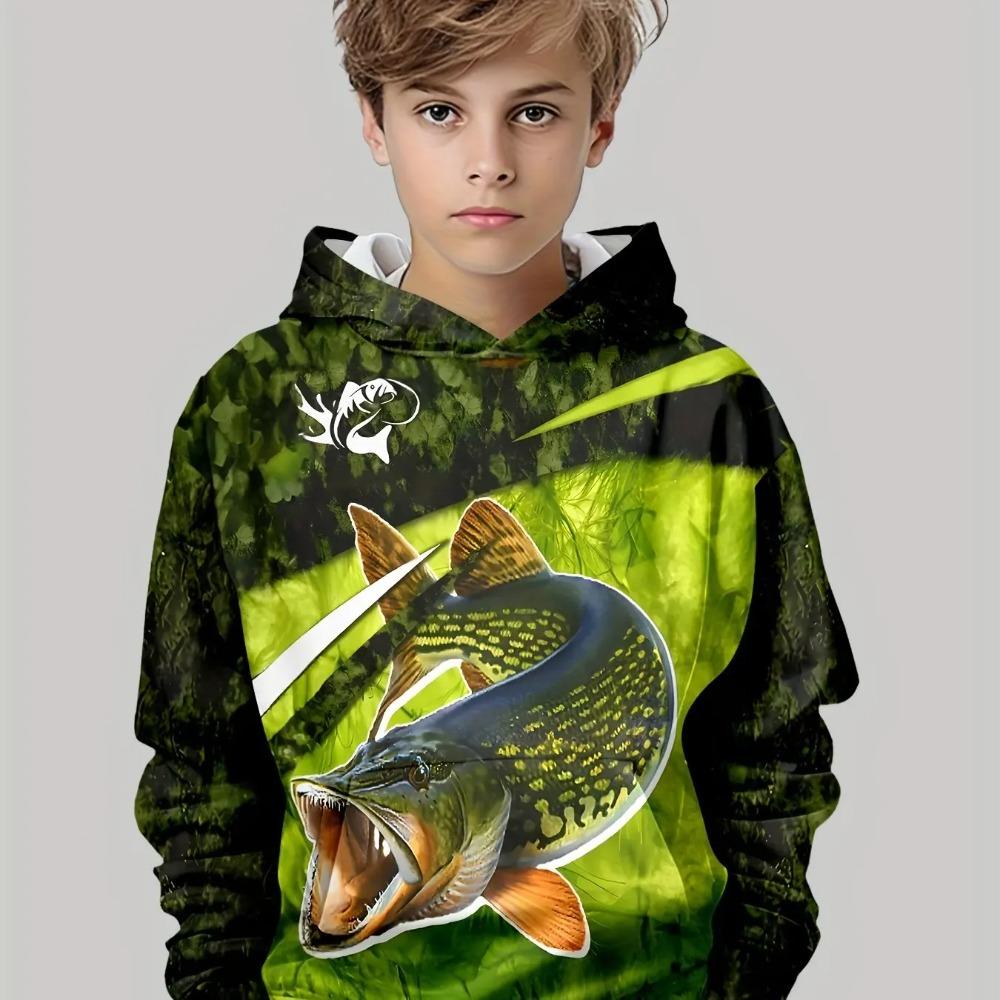 Children's Fishing Pattern 3D Digital Printing, Boys' Hip Hop Personality Hooded Sweatshirt