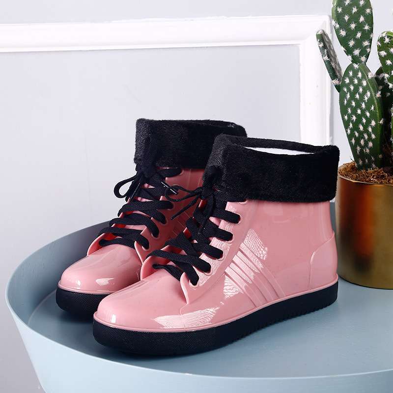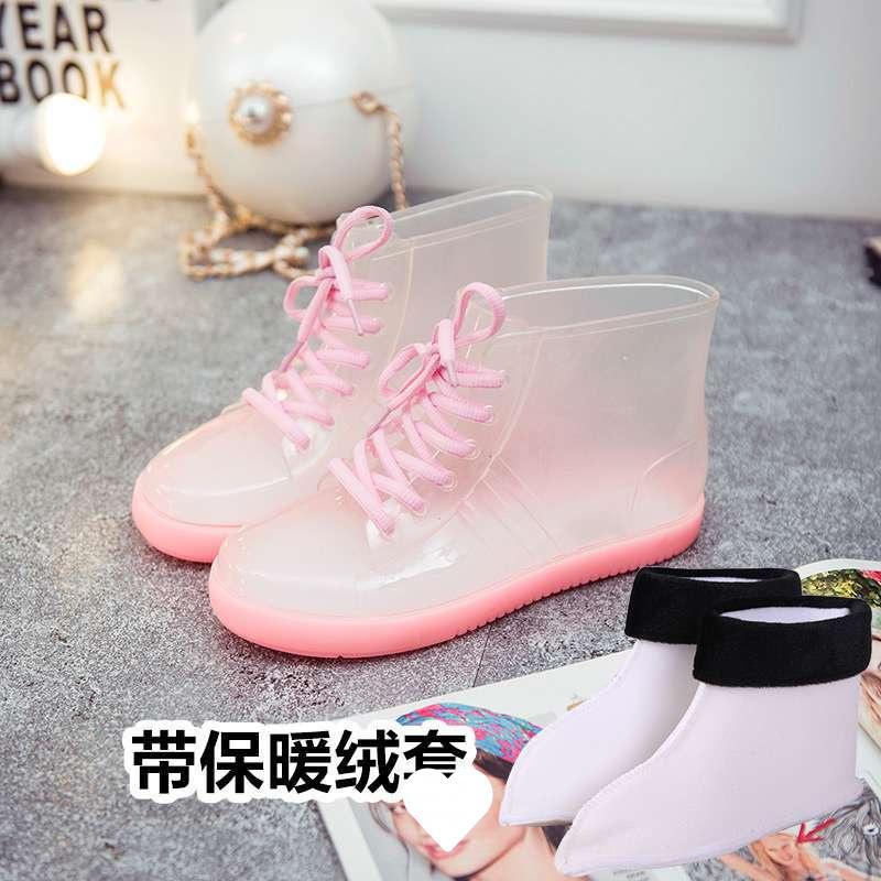 Желейные прозрачные нескользящие модные водонепроницаемые туфли дождевые туфли резиновые сапоги галоши бархатный хлопок водные сапоги женские короткие сапоги для взрослых су