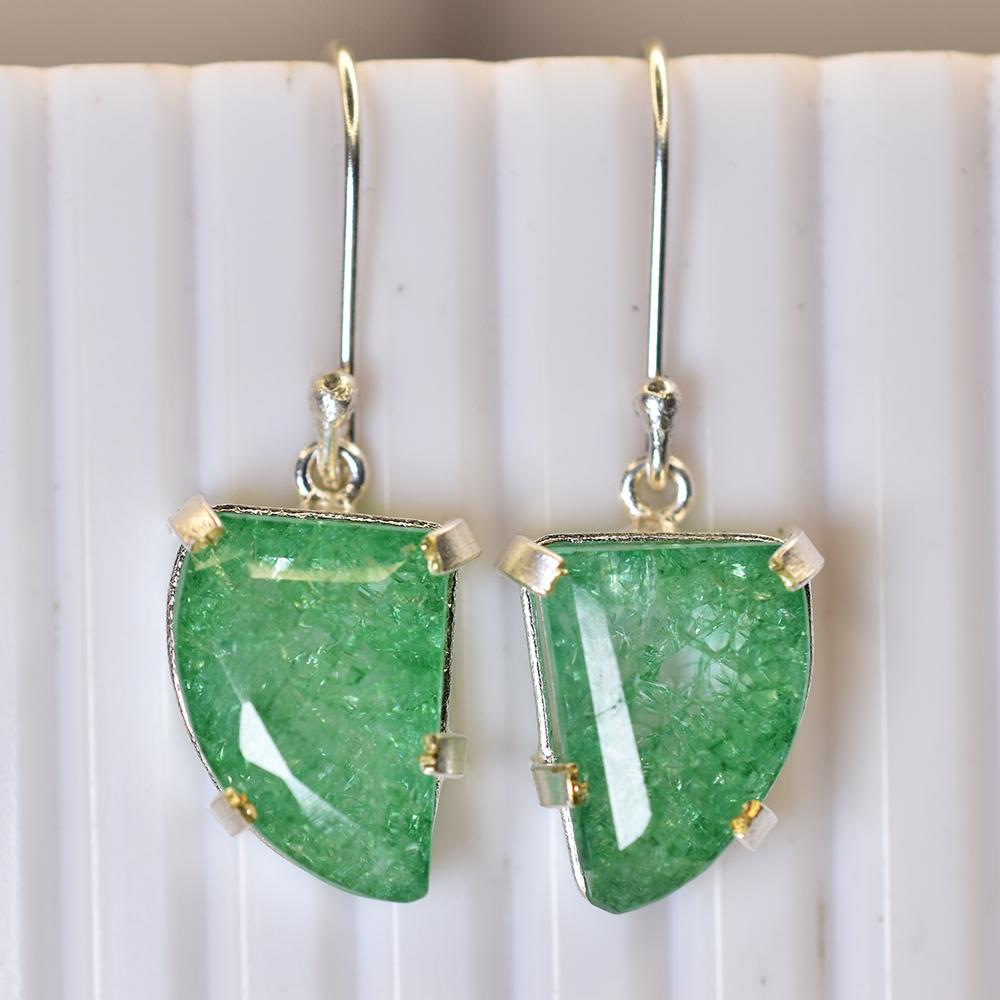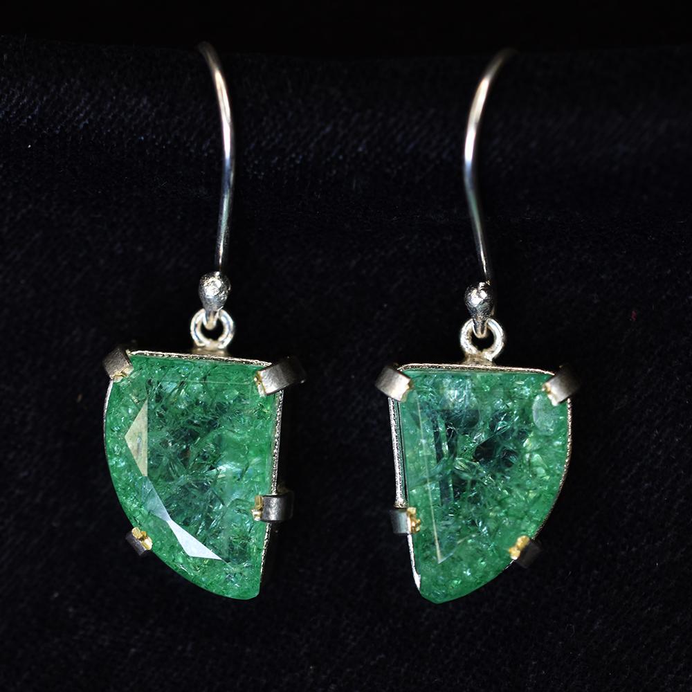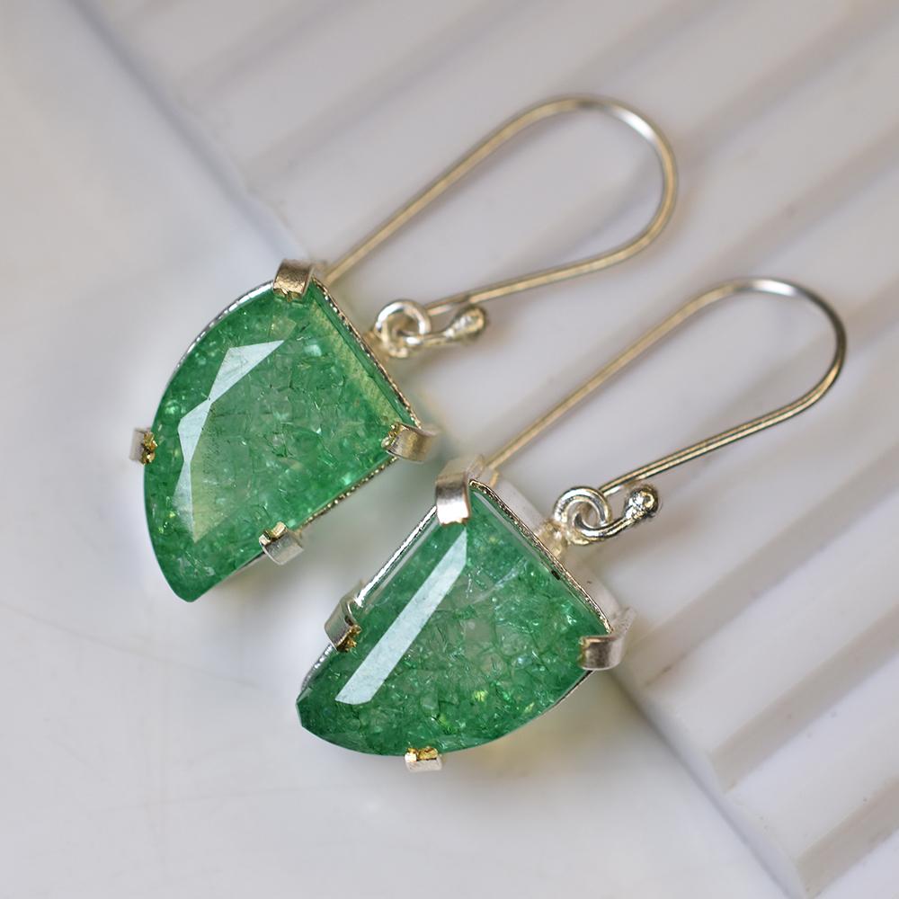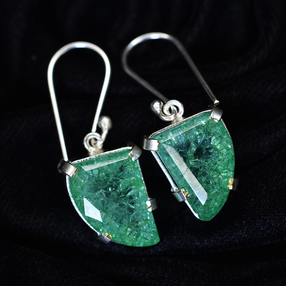 СЕРТИФИЦИРОВАННОЕ СЕРЕБРО 925 пробы A+ 57 карат Натуральный зеленый изум Необычная серьга MY.ER-41-NS