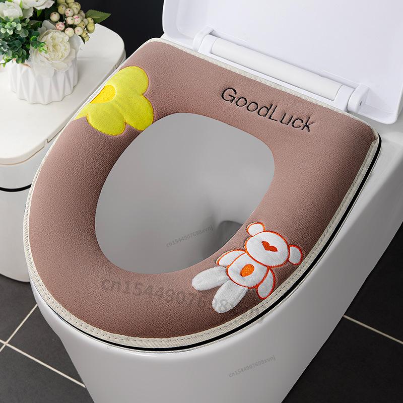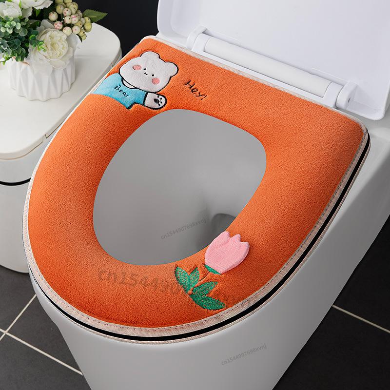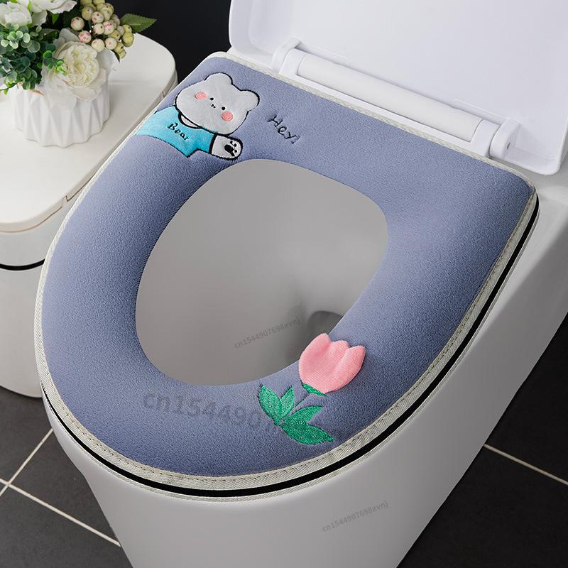 Универсальный чехол на сиденье для унитаза, коврик для туалета с мультяшным рисунком, мягкая теплая подушка на сиденье для унитаза, аксессуары для крышки унитаза для ванной комнаты