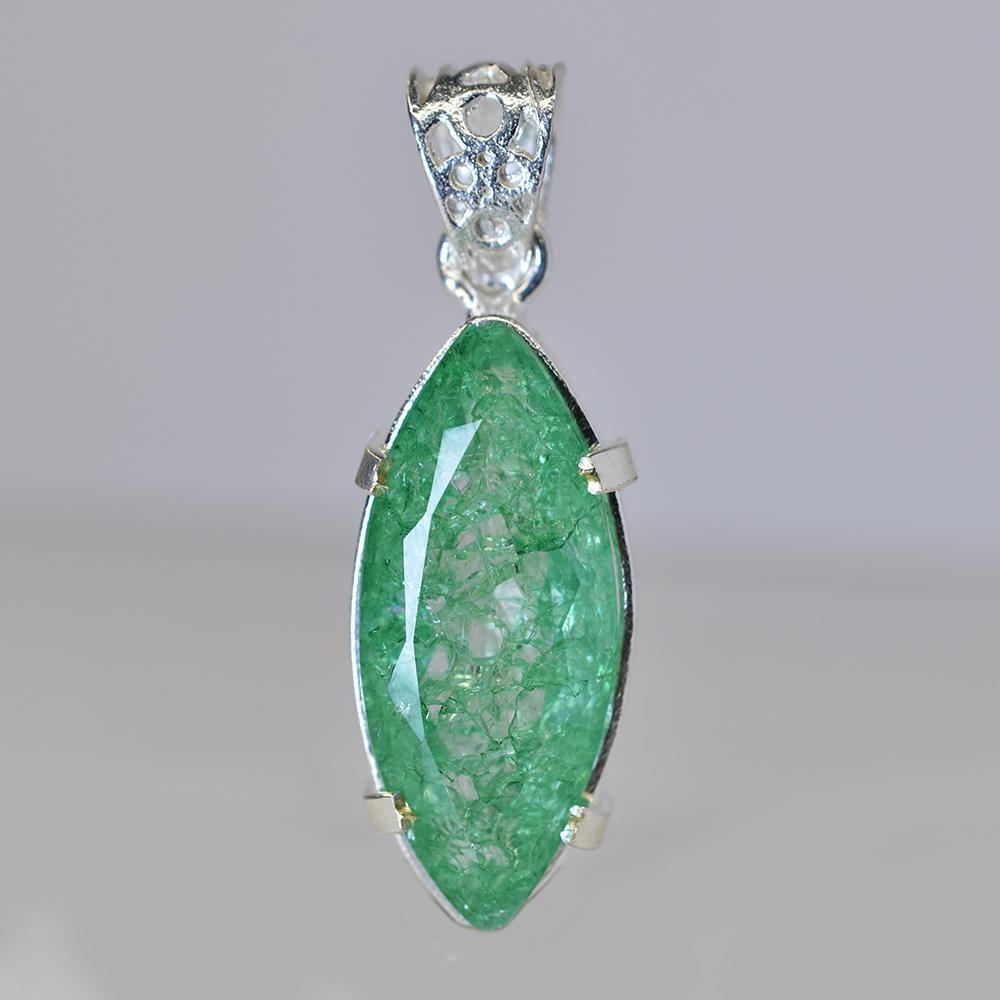 СЕРТИФИЦИРОВАННОЕ СЕРЕБРО 925 пробы 40 карат Натуральный зеленый изум огранки «маркиза» Подвеска MY.PD-175-NS