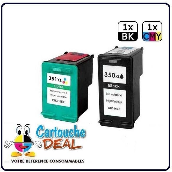Lot de 2 cartouches - CARTOUCHE DEAL - Compatible HP 350XL 351XL - Noir - Grande capacité - 34ml 15ml
