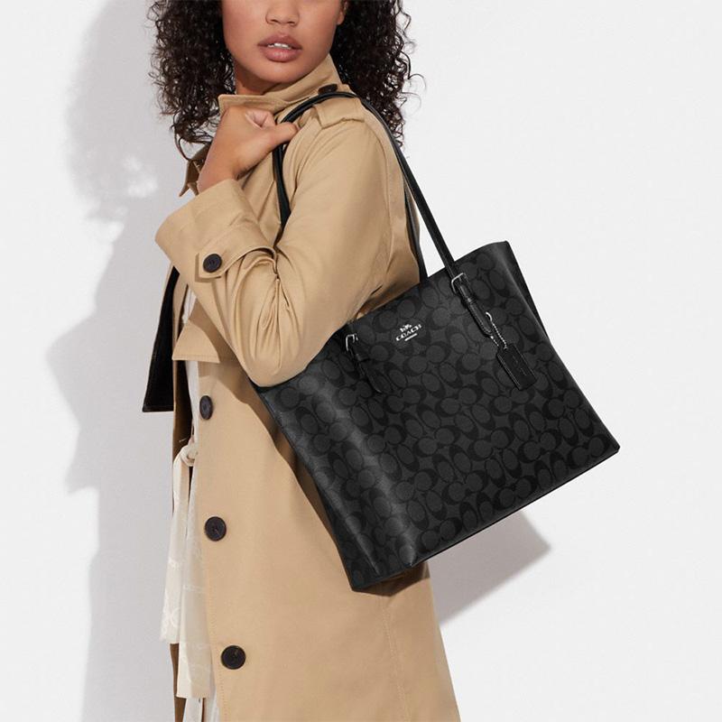 Новая сумка-тоут COACH Mollie из искусственной кожи, сумка для покупок, сумка через плечо, женская черная 1665-SVTSQ