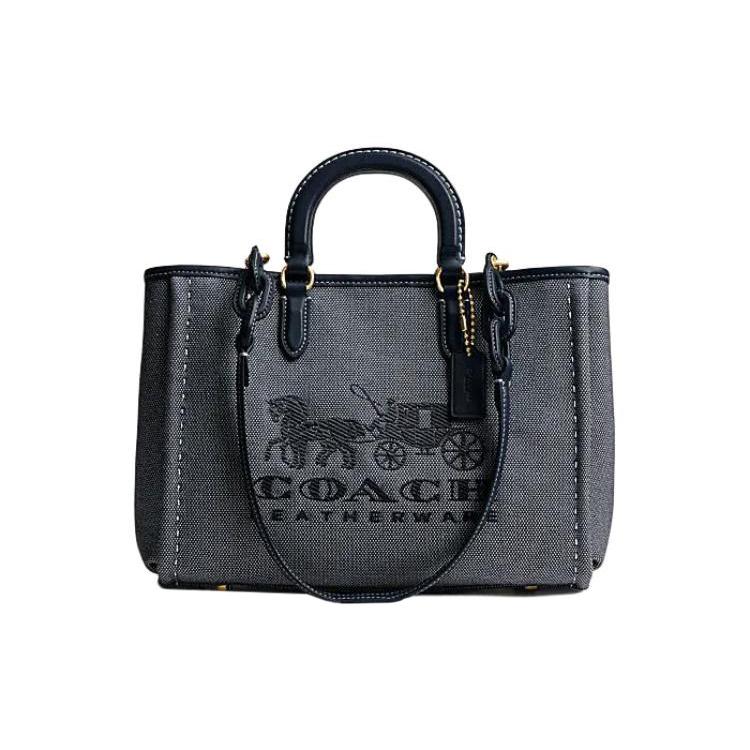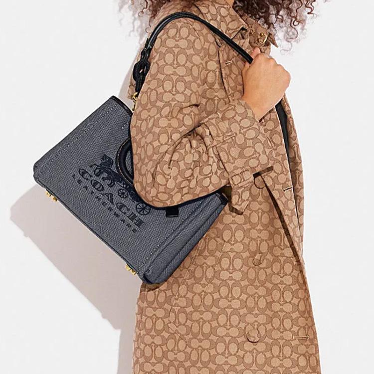 Новая тканевая сумка-тоут COACH, сумка для покупок, сумка через плечо, большая женская темно-синяя CJ811-B4BHP