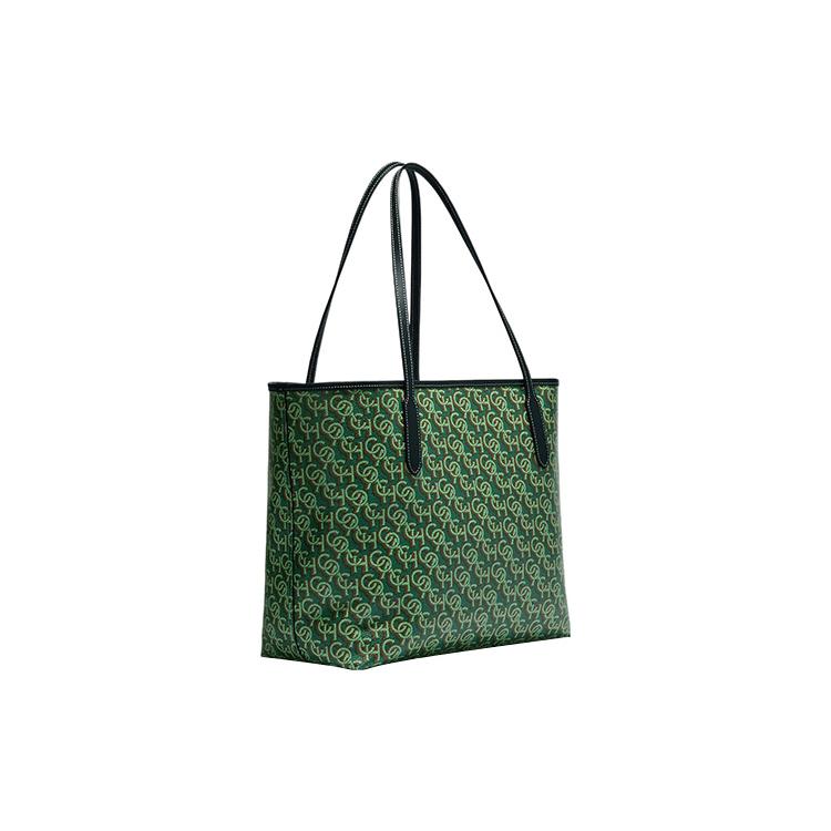 Новая сумка-тоут COACH City с принтом из канвы с покрытием и гладкой кожи, сумка для покупок, дамская сумочка, сумка через плечо, зеленая CF342-IMGRN