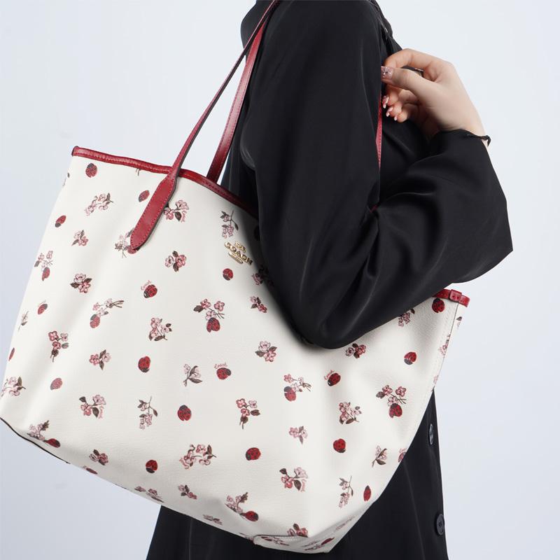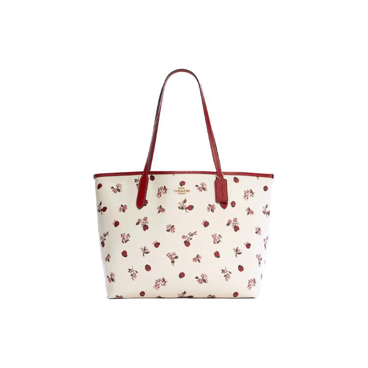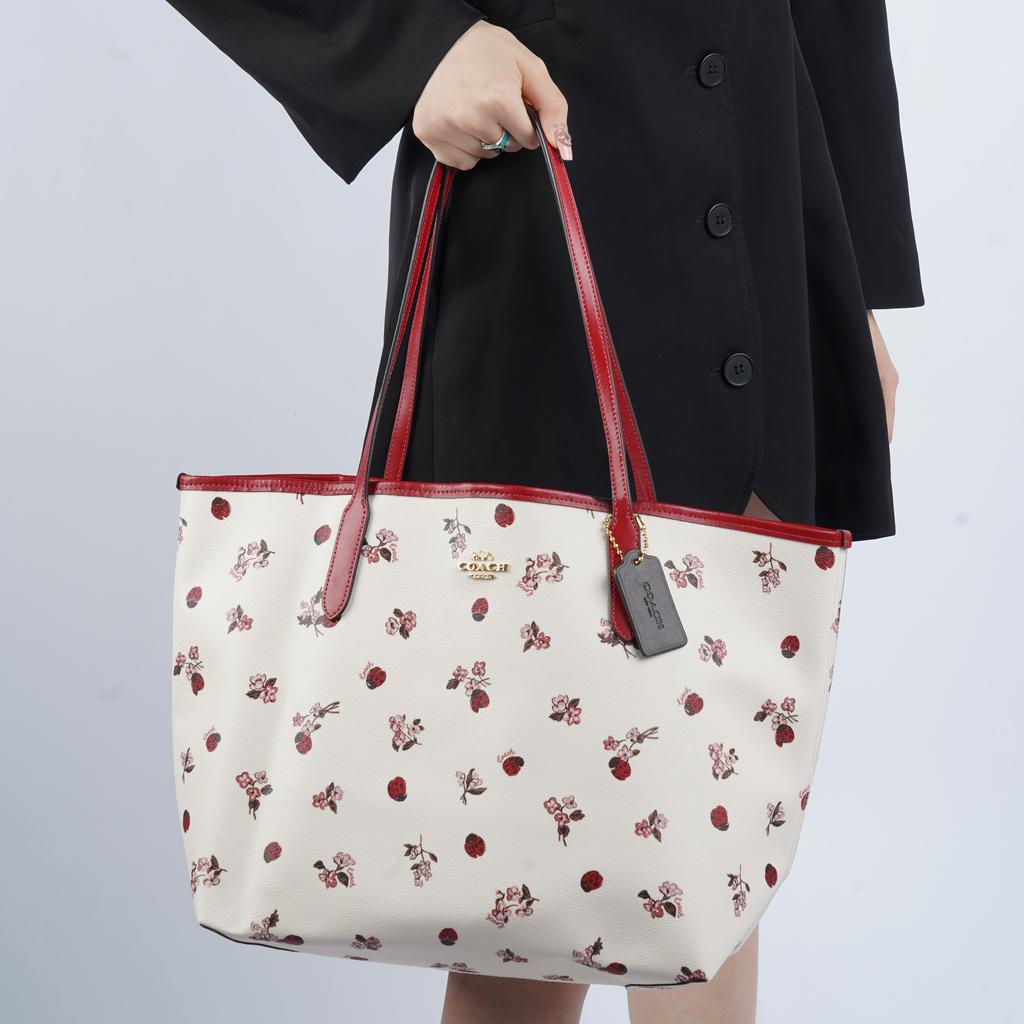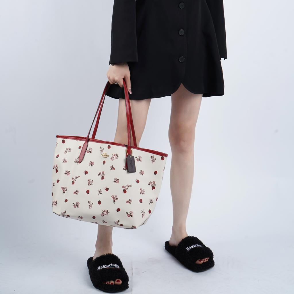 New COACH City Coated Canvas With Smooth Leather Tote Bag, Shopping Bag, Shoulder Bag, Handbag Tubas Women's White C7272-IMCAH