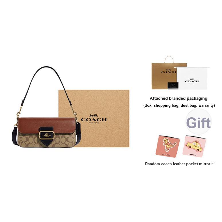 Новая портативная сумка кроссбоди COACH из коровьей кожи, большая женская сумка на плечо, хаки и коричневая CE560-IME7V