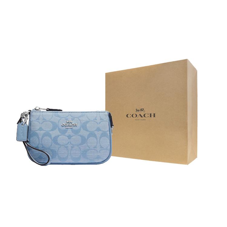 Новый клатч COACH Nolita из жаккардовой ткани и спилковой кожи, шамбре, мини, женский, светло-голубой, CI027-SVM6A