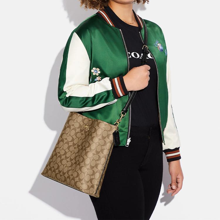 Новая холщовая сумка-ведро COACH Mollie с кожаной отделкой, сумка через плечо, сумка на плечо, большой размер, женская CA561-IMCBI