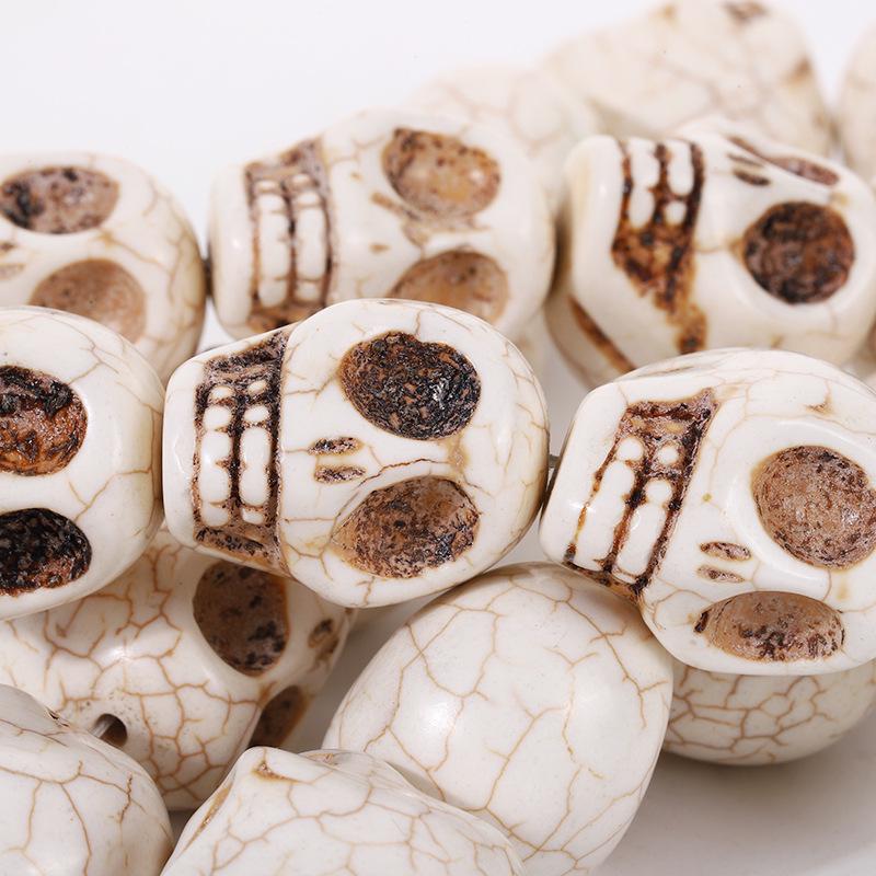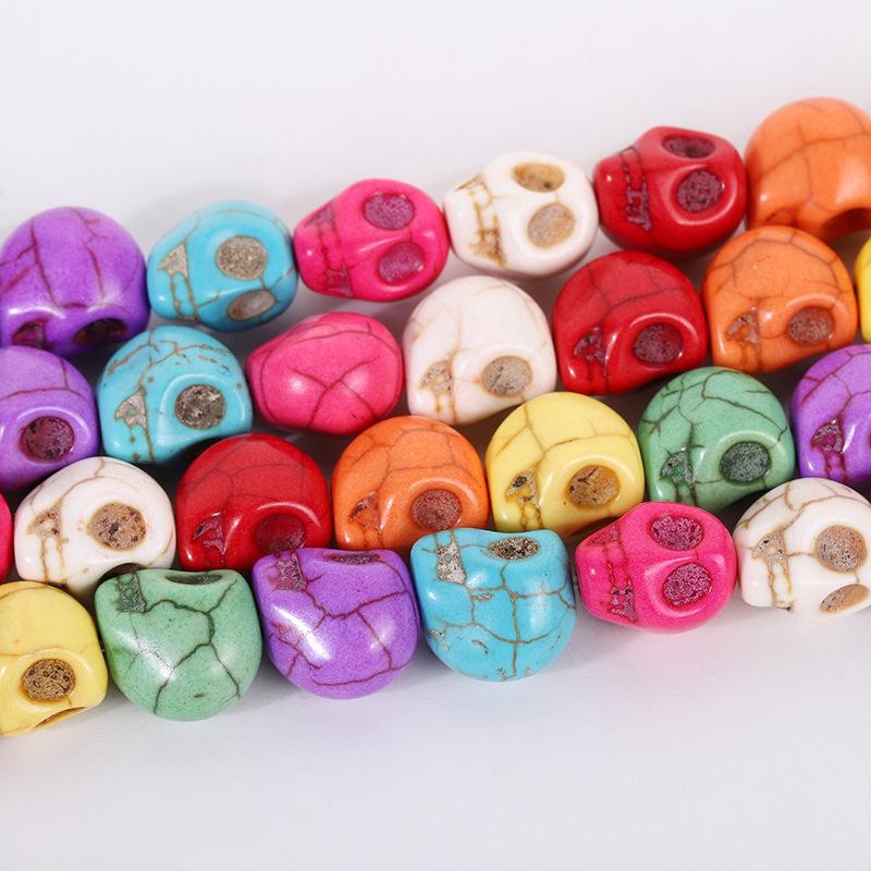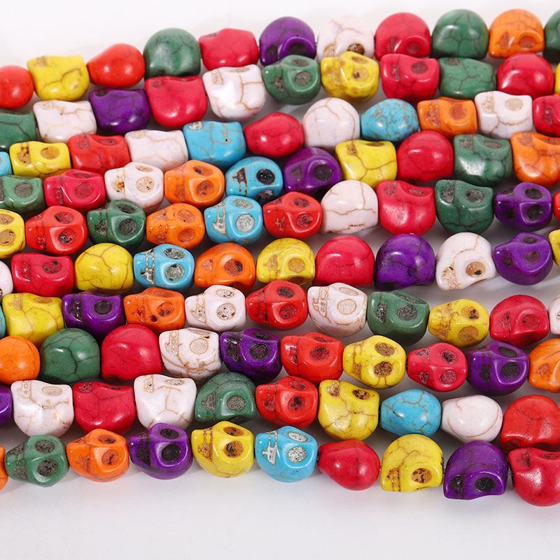 Цветные бусины-черепа на Хэллоуин: Подвески из синтетической бирюзы для изготовления украшений своими руками