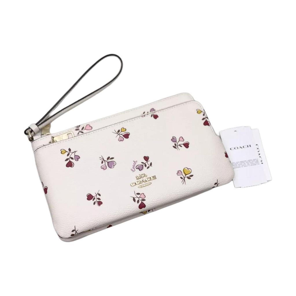 Новый кошелек COACH на двойной молнии, кошелек из канвы с покрытием, женский, золото и мел, многоцветный CW969-IMCAH