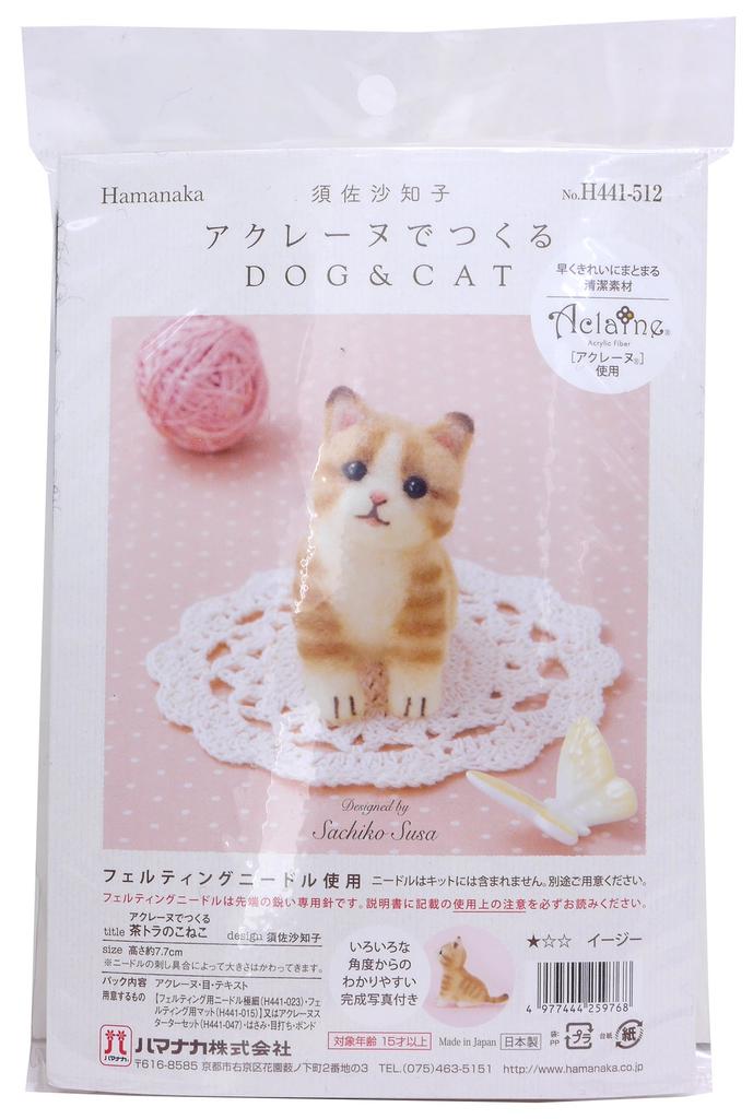 Hamanaka Войлок Сачико Суса Аклайн Собака Коричневый Табби Набор, Дизайн, & Кот, Кот, H441-512